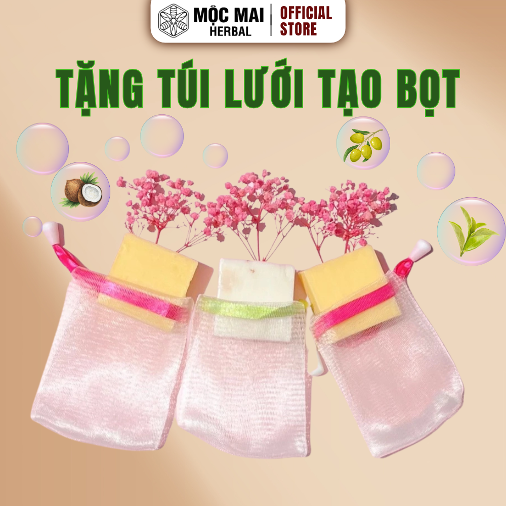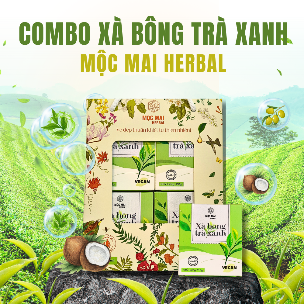 Combo 4 bánh Xà bông trà xanh Mộc Mai Herbal, hỗ trợ giảm mụn lưng, viêm da cơ địa, thâm da chiết xuất thiên nhiên 110g
